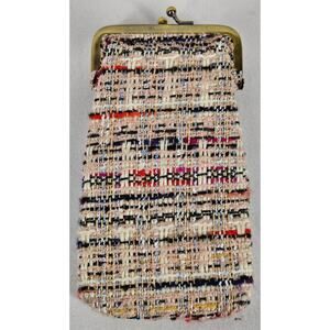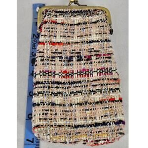 ANTHROPOLOGIE MULTICOLORED TWEED SMALL COIN BAG POUCH - KISS CLASP - PINK LINING