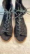ANTHROPOLOGIE MUSSE & CLOUD Sandals Shoes Perforated Black Suede Ankle Zipper on Back of Heel Lace Up Top Front Open Toe