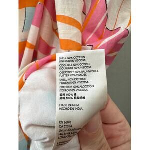• Colorful abstract print in pink, orange, teal & ivory