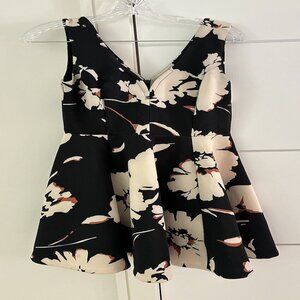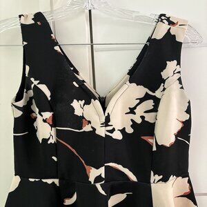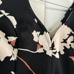 ANTHROPOLOGIE Maeve Amory Scuba Dress Flare Floral Black Cream V Neck Size 8