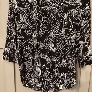 Anthropologie Maeve Black & White Bird Print Pintuck Pleated Button Down Blouse