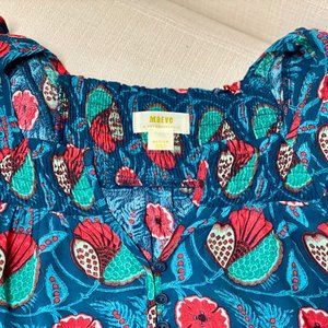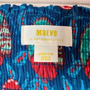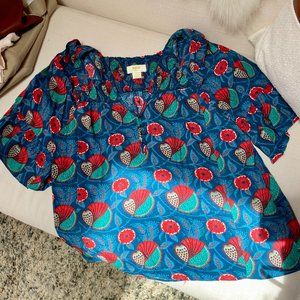 ANTHROPOLOGIE Maeve Blue Red Abstract Poppy Floral Flutter Letitia Sleeve Top -