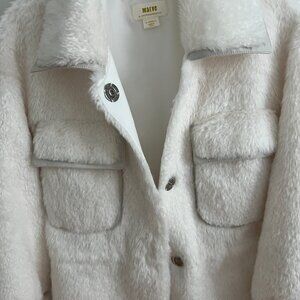 The ANTHROPOLOGIE Maeve Cinched Faux Fur Coat in Size XS is a stylish and fashionable women's coat that features a mid-length design with long sleeves and a snap closure. Made from faux fur with a polyester lining, this coat is designed for a relaxed fit and comes in a classic white color. It also includes lined and collared features along with pockets for added convenience. Perfect for adding a touch of elegance to any outfit, this Anthropologie coat is a must-have for those looking for a versatile and high-quality winter garment.