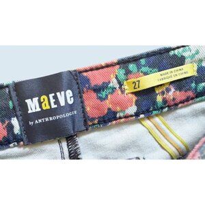 Nice pair of jeans by Anthropologie / Maeve. Allover colorful floral print. Zip / button closure. High rise. Straight leg. 91% cotton / 8% polyester / 1% elastane. Size 27. Pre-owned and gently worn in really nice condition!