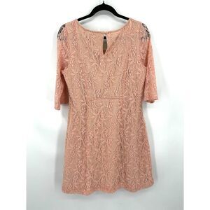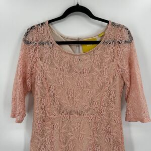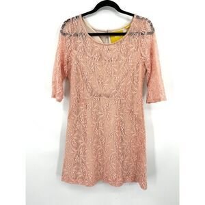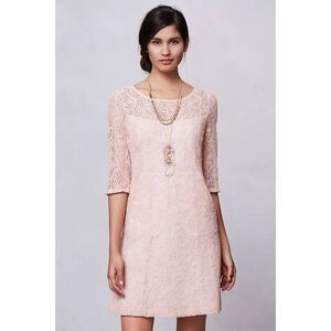 ANTHROPOLOGIE Maeve Light Pink Lefkara Lace Half Sleeve Mini Dress Size Medium