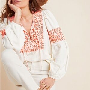ANTHROPOLOGIE Maeve Louisa Textured Peasant Top XS