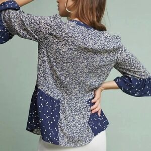 ANTHROPOLOGIE Maeve NAVY BLUE HIVER LACE BIB BLOUSE Size 6