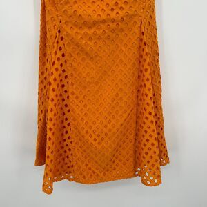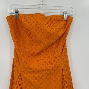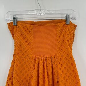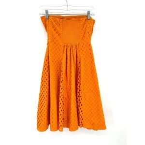 ANTHROPOLOGIE Maeve Orange Strapless Eyelet Smocked Pleated Knee Length Dress 4