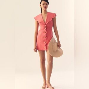 ANTHROPOLOGIE Maeve Pink Scalloped Buttondown Dress