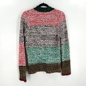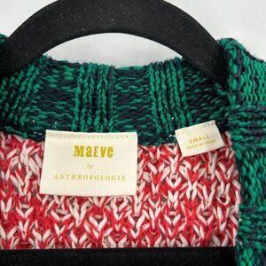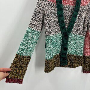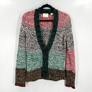 ANTHROPOLOGIE Maeve Red Green Colorful Knit Button Up Cardigan Sweater Small