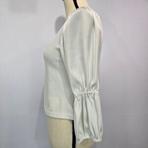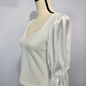 Maeve by Anthropologie Ribbed Tiered Sleeve White Blouse