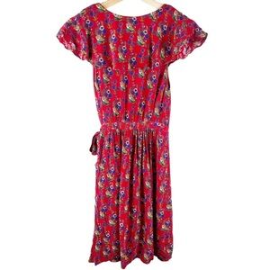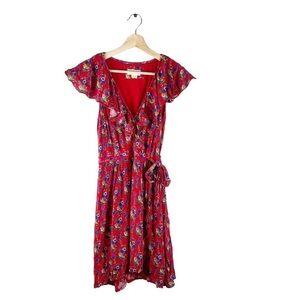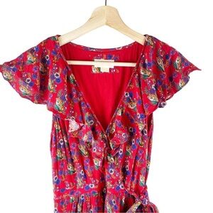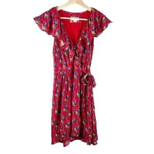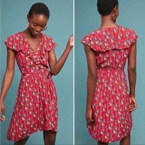 ANTHROPOLOGIE Maeve Rosalia Ruffle Faux Wrap Red Floral Dress Size 8