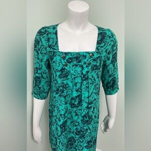 ANTHROPOLOGIE Maeve Rosemary Teal and Navy Floral Mini dress size 2