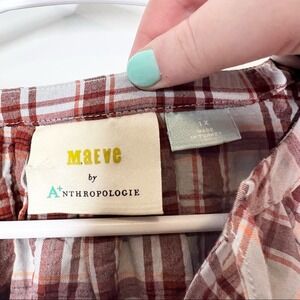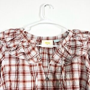ANTHROPOLOGIE Maeve Ruffled Plaid Button Down Top Plus Size 1X Western Boho