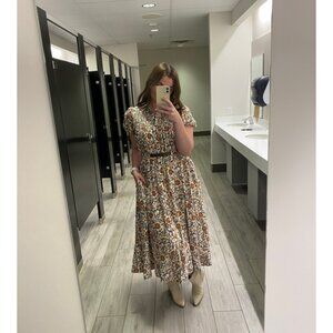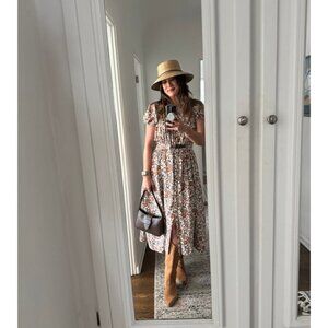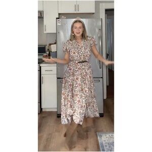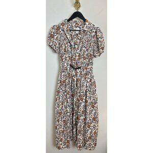 ANTHROPOLOGIE Maeve Short-Sleeve Belted Midi Shirt Dress in Neutral Size Medium