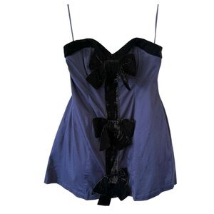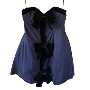 ANTHROPOLOGIE Maeve Strapless Velvet Bow Mini Dress Navy Black Size L NEW