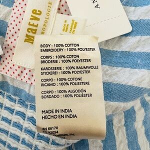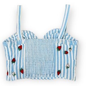 ANTHROPOLOGIE Maeve Striped Strawberry Embroidered Cami Blue White Tube Top NEW