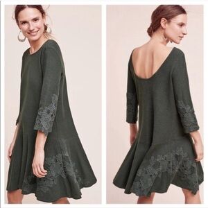 ANTHROPOLOGIE Maeve Tierra Green Dropwaist Linen Dress Size XS Petite