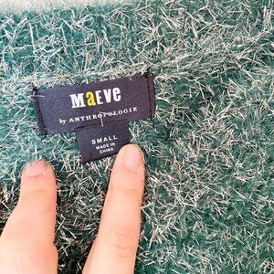 🦋 ANTHROPOLOGIE Maeve Tinsel Eyelash Sweater Green Shimmer Size Small