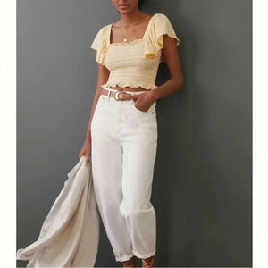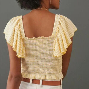 ANTHROPOLOGIE Maeve crinkle gingham smocked top ruffle details Size L