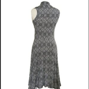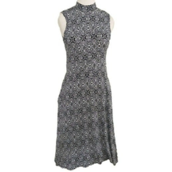 Anthropologie MAEVE Swing Black White Geometric Dress XS Mock Neck Sleeveless 2 Pocket
