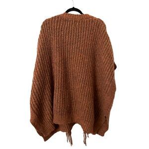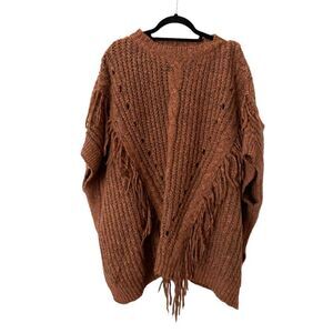 Brown fringe knit poncho. Oversized. Crewneck. 83% polyester, 17% acrylic. Great preloved condition - no flaws! One size.