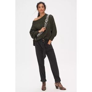 ANTHROPOLOGIE Melissa Cable-Knit Sweater Pullover Cable Knit Green Slouchy Small