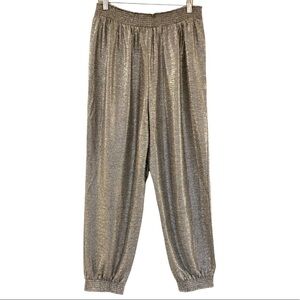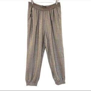 ANTHROPOLOGIE Metallic Silver Elastic Waist Joggers Size LP