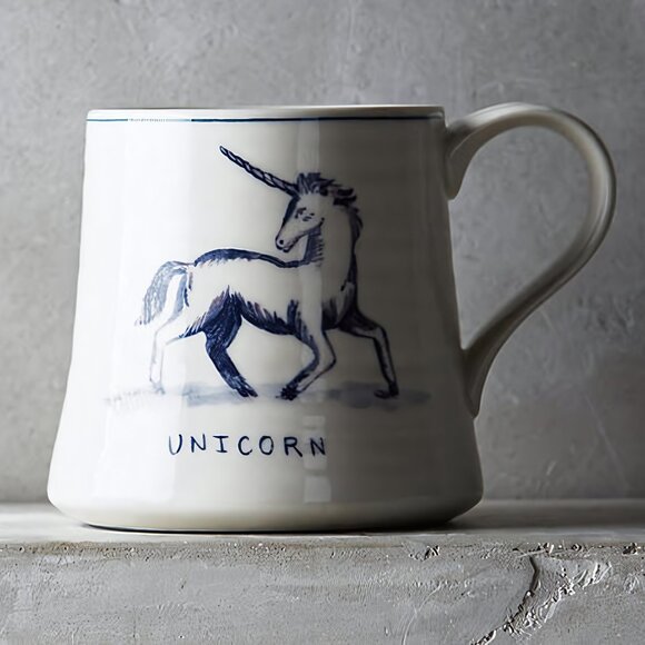ANTHROPOLOGIE | Molly Hatch Unicorn Icon Mug Stoneware Blue White EUC