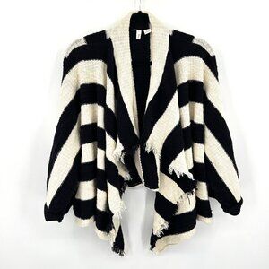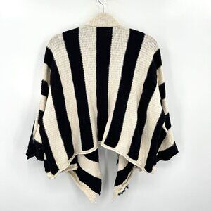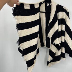 ANTHROPOLOGIE Moth *Flawed Black Cream Striped Knit Fringe Oversized Cardigan