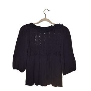 ANTHROPOLOGIE NEW $98 Knitted & Knotted Navy Ruffle Trim Cardigan Medium