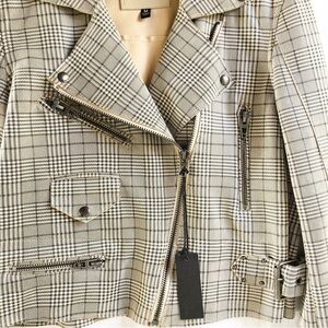 • New with tags and in good condition. Medium. Moto jacket design. Zippers and pockets scattered throughout the jacket. Can be adjusted to your preference.