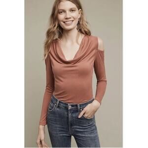 ANTHROPOLOGIE NWT Deletta Mauve Cold Shoulder Drape Neck Blouse // S
