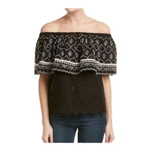 ANTHROPOLOGIE NWT S Hemant & Nandita Black Eyelet Off Shoulder Boho Whimsy Top