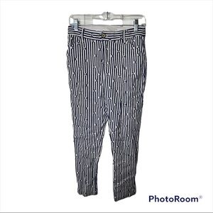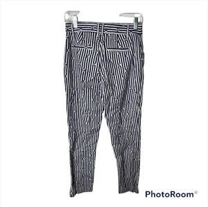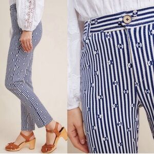 ANTHROPOLOGIE Navy White Stripe Floral Essential Slim Trousers