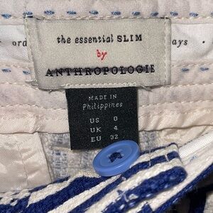 ANTHROPOLOGIE Navy White Floral The Essential Slim Straight Leg Pants Size 0
