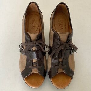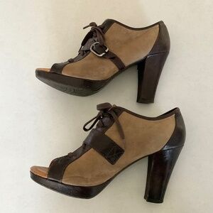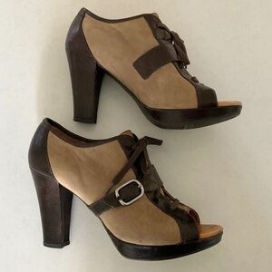 ANTHROPOLOGIE Naya Kasha Brown Leather/Suede Peep Toe Heeled Booties Size 10