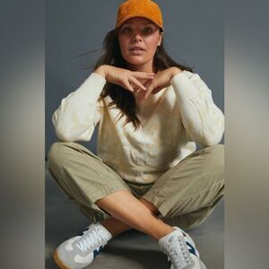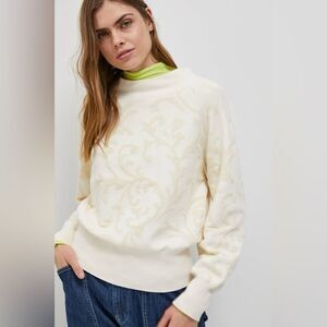 ANTHROPOLOGIE Nina Velvet Sweater Sz. Small Ivory Textured Knit Neutral Bohemian