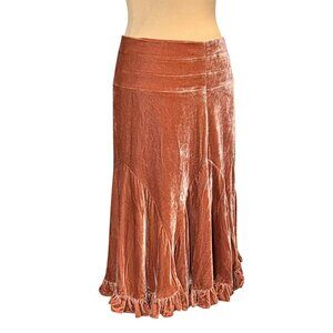 ANTHROPOLOGIE ODILLE Crushed Velvet Skirt Sz 2 Ruffle Hem Rusty Orange Boho Y2K
