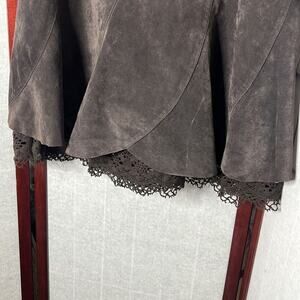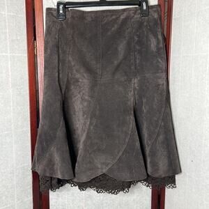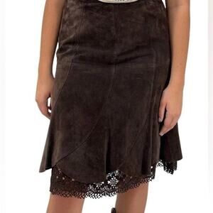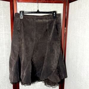ANTHROPOLOGIE ODILLE CHOCOLATE BROWN SUEDE BOHO LACE TRIM SKIRT SIZE 4