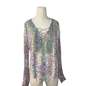 Excellent Used condition Size : Small Product Details Style No. 4112317990042; Color Code: Puffed sleeves, embroidered touches, and a shimmery finish infuse this top with wear-anywhere style. Viscose, metallic fiber Embroidered detail Puffed sleeves Spliced neck with tie Pullover styling Hand wash Imported Aprox measurements: Armpit x armpit:21” Lenght:26” Bx8