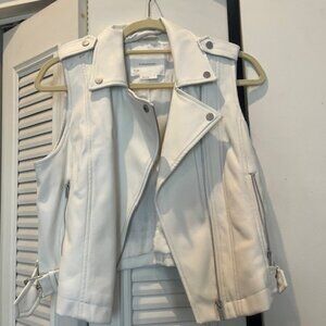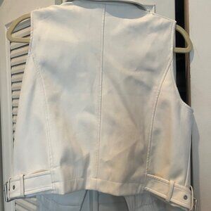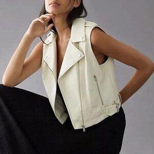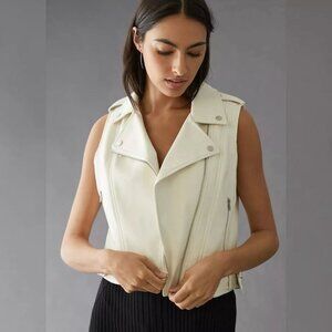 ANTHROPOLOGIE Off White Cropped Faux Leather Moto Jacket Vest Women's Size Small