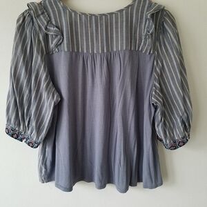 ANTHROPOLOGIE One September Embroidered Floral Ruffle Striped Blouse Size M
