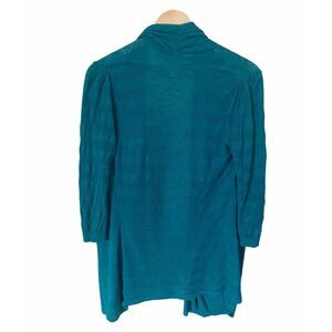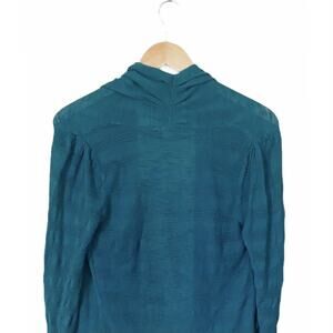 ANTHROPOLOGIE Open Front Cardigan Sweater Long Sleeve Green Ramie Teal Small EUC