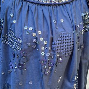 ANTHROPOLOGIE, PANKAJ & NIDHI EMBELLISHED NAVY SHIRT SIZE M NWOT