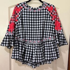 ANTHROPOLOGIE PANKAJ & NIDHI Gingham Swing Tunic Black White Women’s Size XS