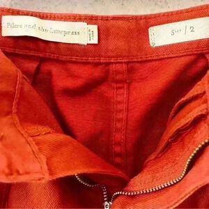 ANTHROPOLOGIE RUSTIC ORANGE PILCRO AND LETTERPRESS BELTED RAW HEM BOHO MINI SKIRT