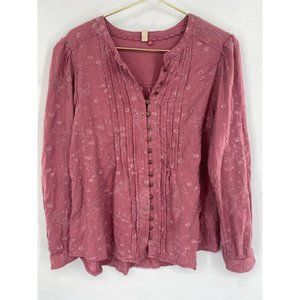 ANTHROPOLOGIE PILCRO BUTTON FRONT EMBROIDERED ROSE PINK XL