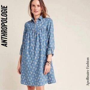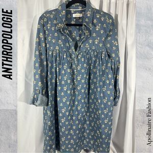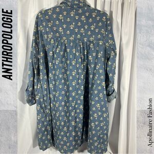 ANTHROPOLOGIE PILCRO FLORAL BLUE DENIM TUNIC DRESS SIZE 14 NWOT