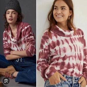 ANTHROPOLOGIE PILCRO L Waffle Weave Dolman Sleeve Raspberry Tie Die Cowl Neck
